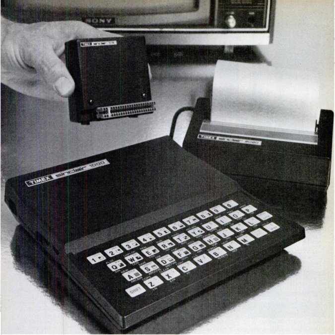 Personal computers. People say the silicon surrogates will change the world. And one look at most of the price tags will tell you they’re right-you’d have to change your life style to afford one. But now our wallets are in for a pleasant surprise. It’s called the Timex Sinclair 1000, and it’s the first ready-to-go personal computer for under $100 ($99.95). Connected to your TV set, it’s a complete system: Compute numbers, display text, draw pictures, even write your own programs using its built-in BASIC language. Optional gear? Sure, additional memory and a printer are available-and each is comparably priced to make the 1000 the lowest-cost system yet.