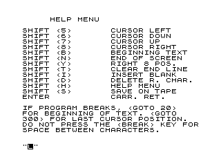 3060 PRINT "SHIFT <H>","HELP MENU"