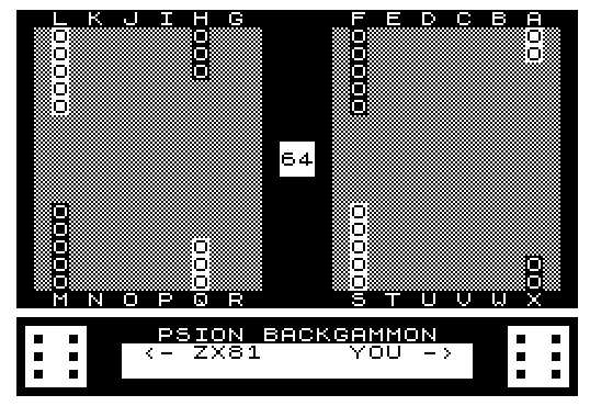 9075 PRINT "................................................................: % % % % %P%S%I%O%N% %B%A%C%K%G%A%M%M%O%N% % % % :: % % <- ZX81 YOU -> % % :: % % % % ::.......% % % % % % % % % % % % % % % % % % % % % % % % .......:"