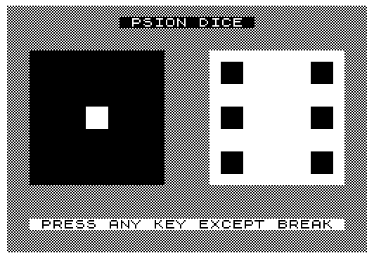 88 PRINT AT 1,10;"% %P%S%I%O%N% %D%I%C%E% "