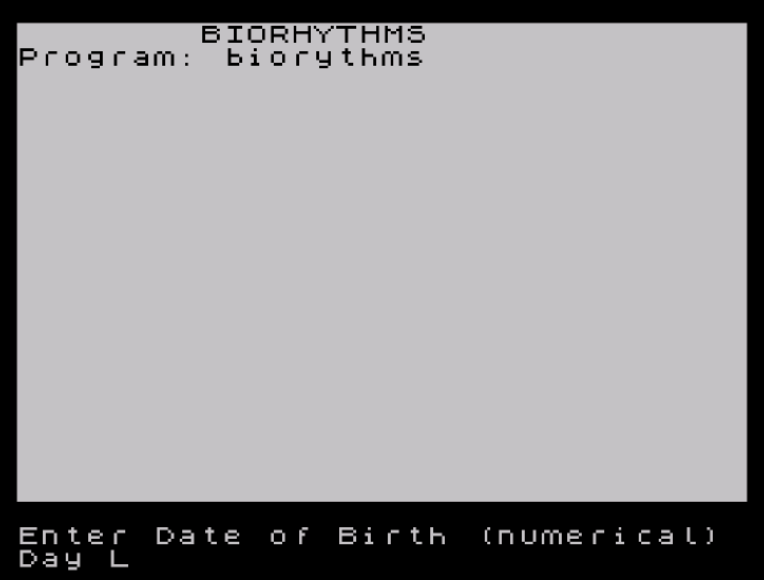 8 PRINT AT 0,0;" BIORHYTHMS "