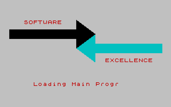 110 PAPER 7: INK 2: PRINT AT 5,3;"SOFTWARE";AT 13,20;"EXCELLENCE";AT 18,5; FLASH 1;"Loading Main Program"