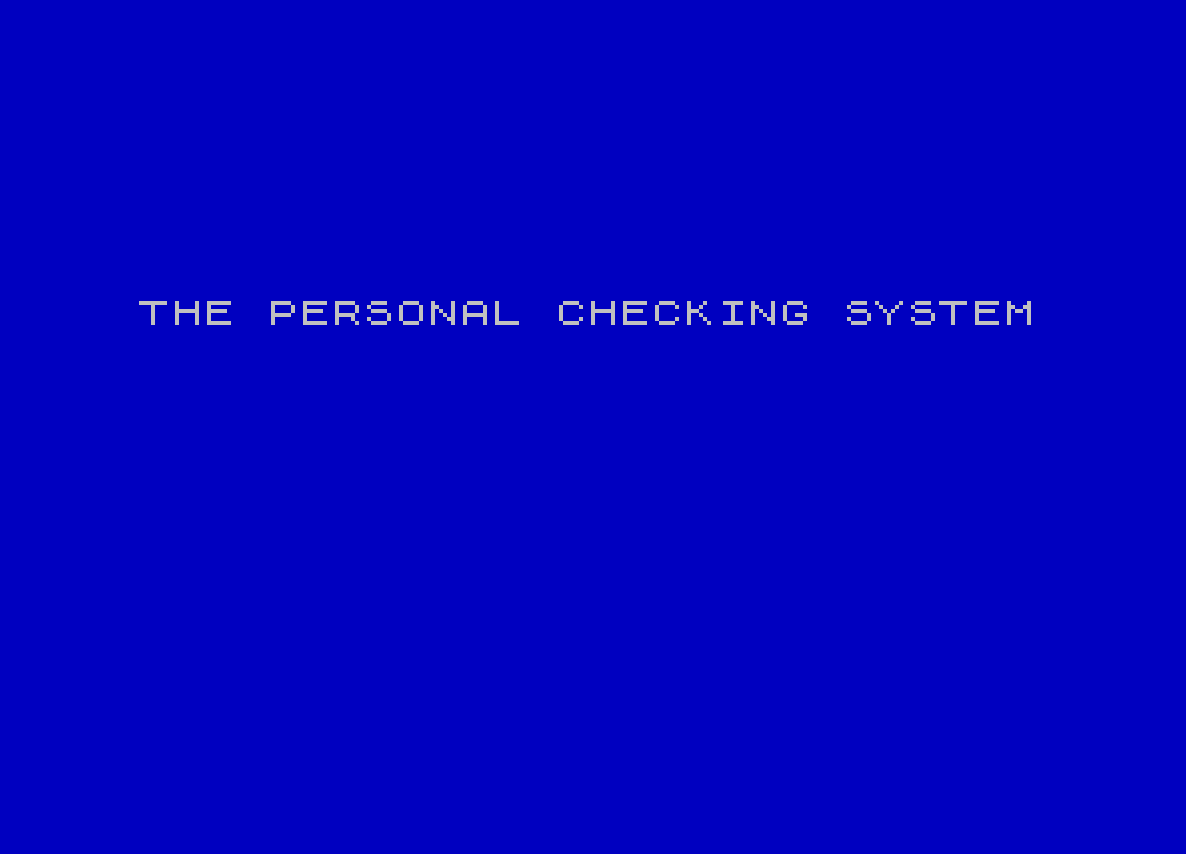 5 INK 0: PAPER 1: BORDER 1: CLS : PRINT INK 7;AT 8,2;"THE PERSONAL CHECKING SYSTEM"