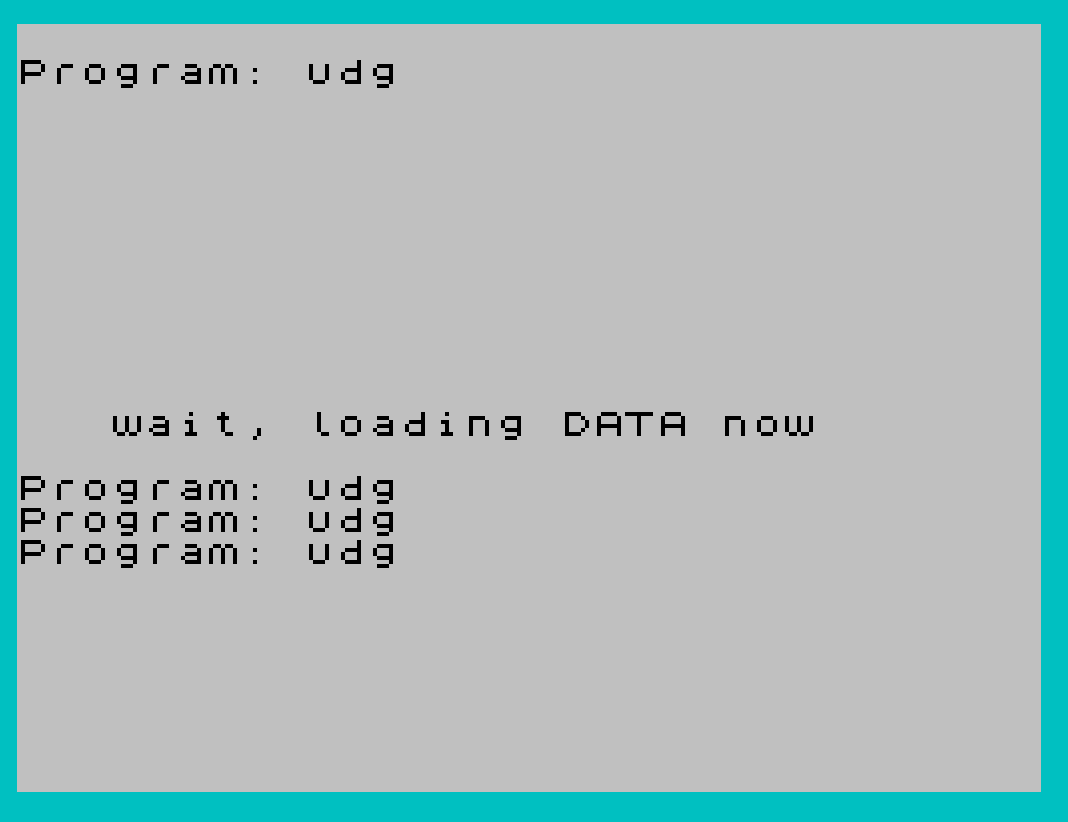 6000 PRINT AT 12,3; FLASH 1;"wait"; FLASH 0;", loading DATA now"