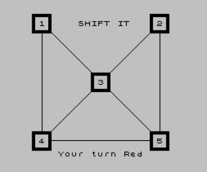 10 CLS : PRINT AT 6,0;" Two players place their 2 chipson the board, then shift them... If they can!"'''" Press the bar": PAUSE 0: CLS
