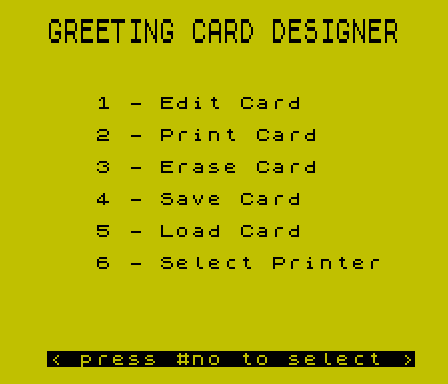 150 PRINT AT 13,8;"5 - Load Card"