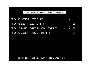 70 PRINT AT 2,6;" INVENTORY PROGRAM "