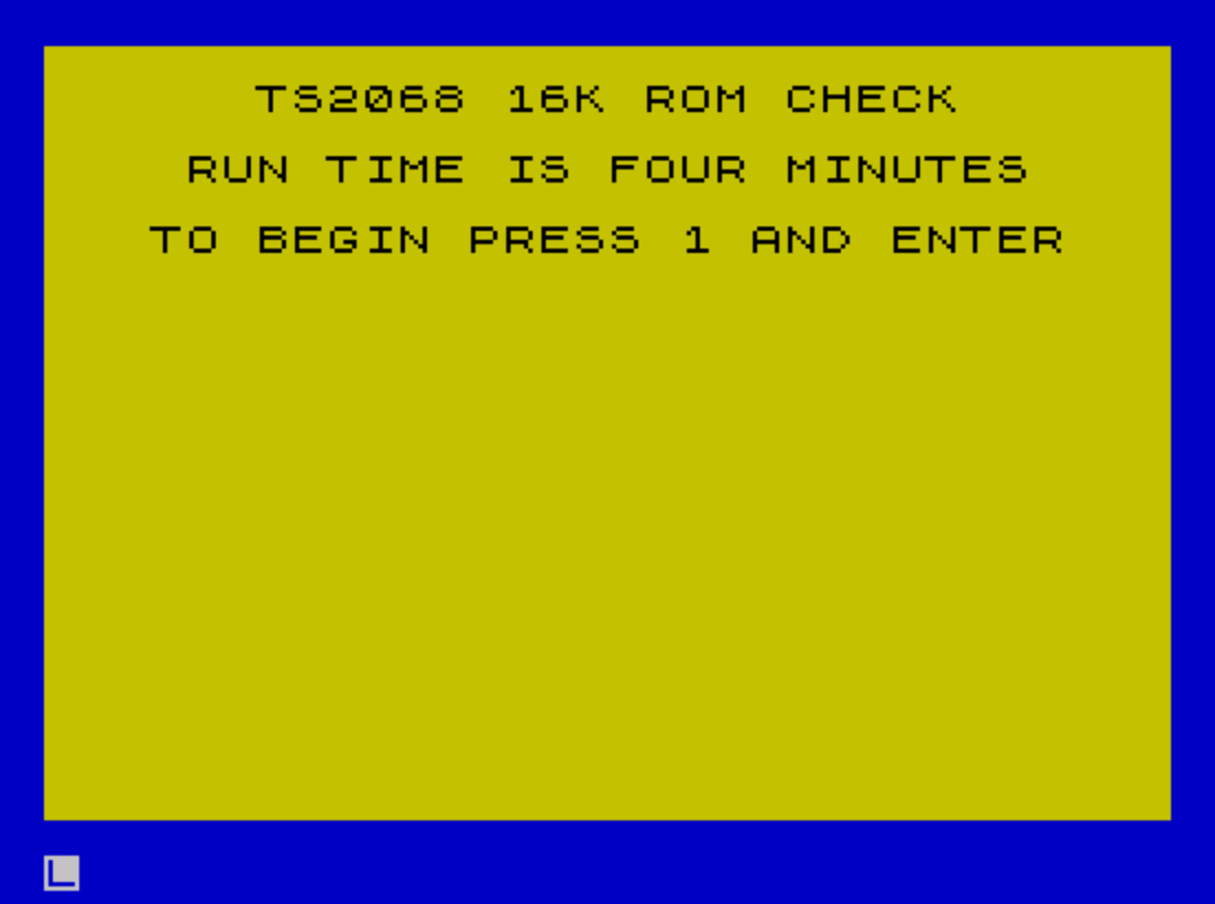 11 PRINT TAB 6;"TS2068 16K ROM CHECK"