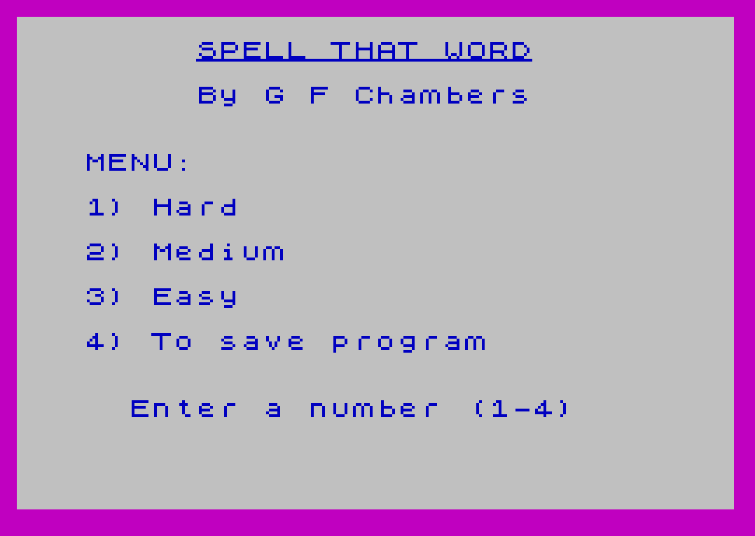500 PRINT 'TAB 8;"SPELL THAT WORD"