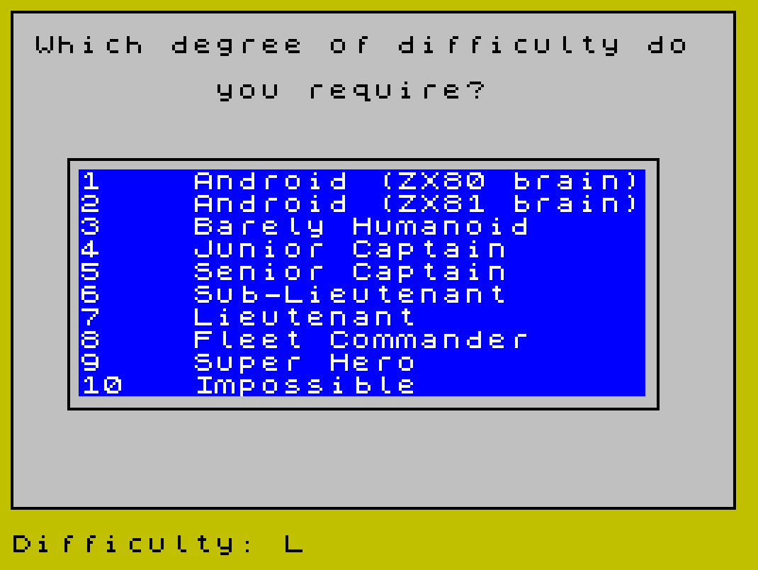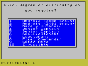 9244 CLS : PRINT AT 1,0;" Which degree of difficulty do"''" you require?": GO SUB 7900