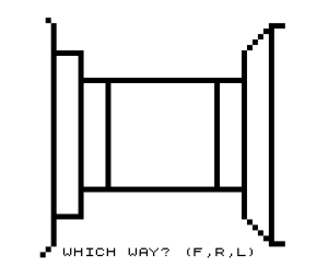 570 PRINT AT 21,7;"WHICH WAY? (F,R,L)"