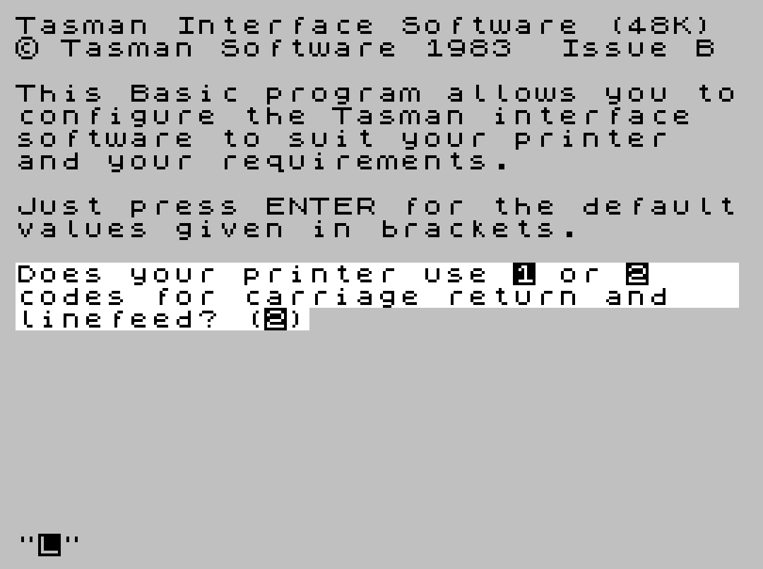 BASIC program to configure your TASMAN printer interface.