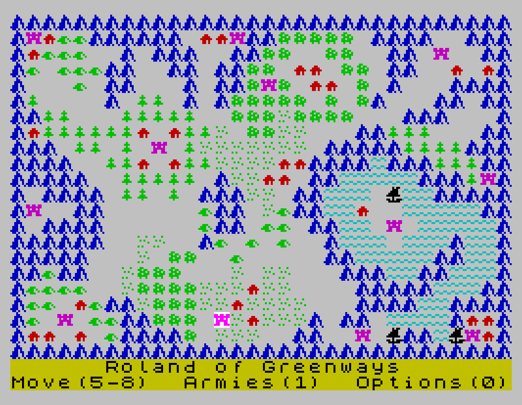 46 LET armies=0: LET m=USR 60000: LET z$=FN f$(char): PRINT #1; PAPER 6;AT 0,0,,AT 0,0;TAB FN p();z$'"Move(5-8) Armies(1) Options(0)": PAPER 7: INK 8: PRINT AT a(char,5)-1,a(char,4)-1; OVER 1;" ": RETURN