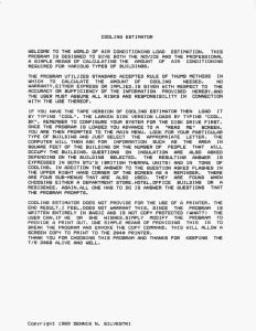 Cooling Estimator instructions View on archive.org Author(s): Dennis Silvestri Pages: 1 Date: 198x 2009 one-page contact information sheet from David Leech of Byte-Back Co. for Timex/Sinclair hardware and software. Document Related Content Heading Image Gallery Tags Documentation TS 2068 People Dennis Silvestri