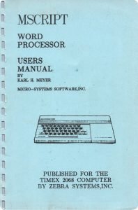 MSCRIPT Word Processor Users Manual View on archive.org Author(s): Karl Meyer Publisher: Zebra Systems, Inc. Pages: 76 Date: 1984 Edition published for the Timex 2068 Computer by Zebra Systems, Inc. Document Related Content MSCRIPT (product) Heading Image Gallery Tags Documentation TS 2068 Zebra Systems People Karl Meyer