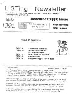 LISTing Newsletter December 1992