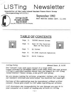 LISTing Newsletter September 1992