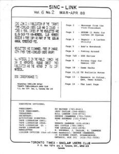 Update on state of Timex/Sinclair and Sinclair computer usage, meetings, newsletter. |