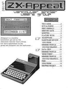 | Member Profile | Anxious to find someone to repair her Timex Sinclair she inquired at the Commodore Users Group and was referred to R.L. Humphreys of V.S.U.G. She arrived at her first meeting computer in hand —-problem solved. She feels very humble listening to this august assembly of technicians and programmers. Nothing like learning from experts. As perhaps | |