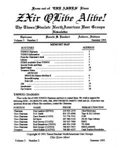 | RecordKeeping | While there are a few ‘DataBase’ softwares available for the 2068 such as PROFILE, I like to roll my own program. I needed some kind of simple record to keep track of the membership list. Of course this program can be used for any other data keeping function. 1000 records, 32 characters each and 3K | Timex/Sinclair 2068, Type-in program |