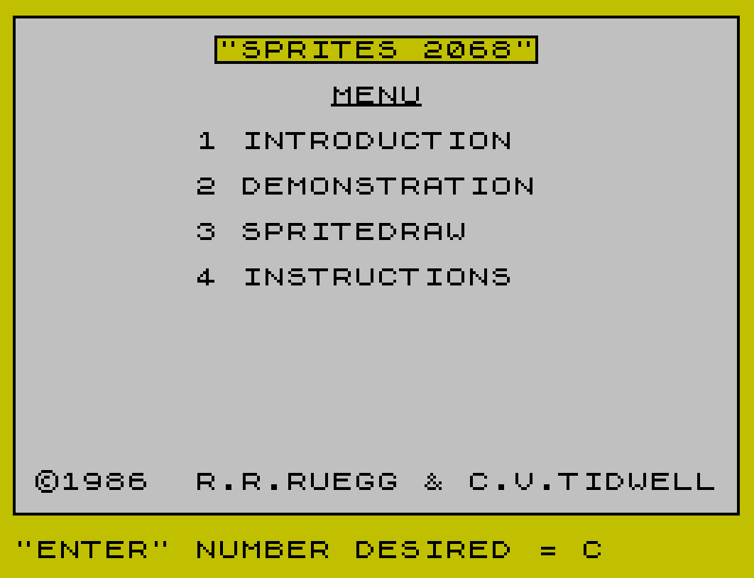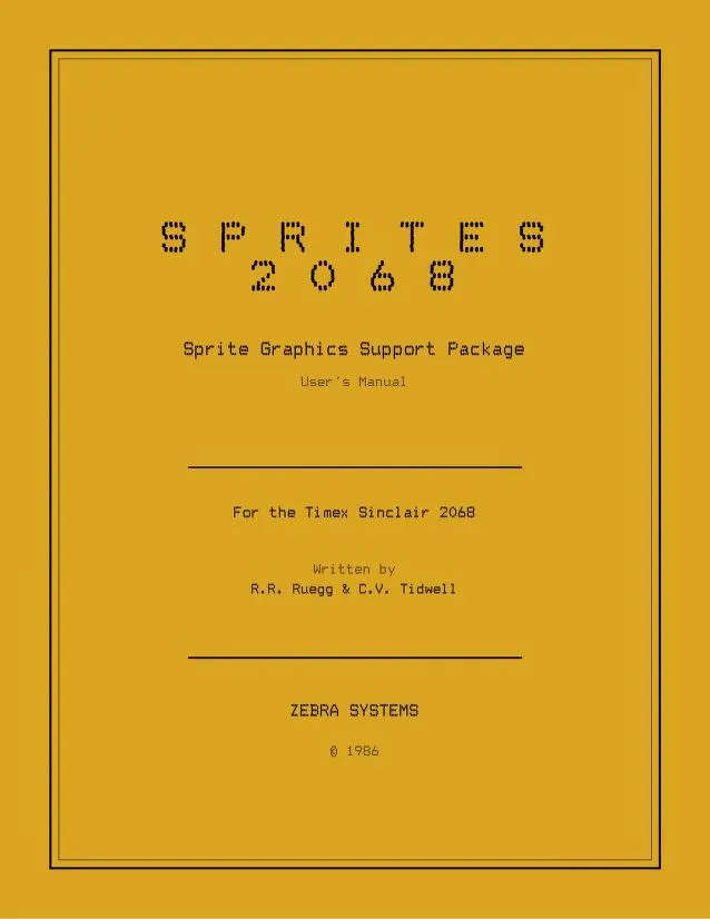This sprite graphics demonstration and utility suite for the TS2068, built around a machine code “Sprite Service Package” loaded at address 60160, is a corrected and updated version of the sprite code from the Timex/Sinclair 2068 Technical Manual.