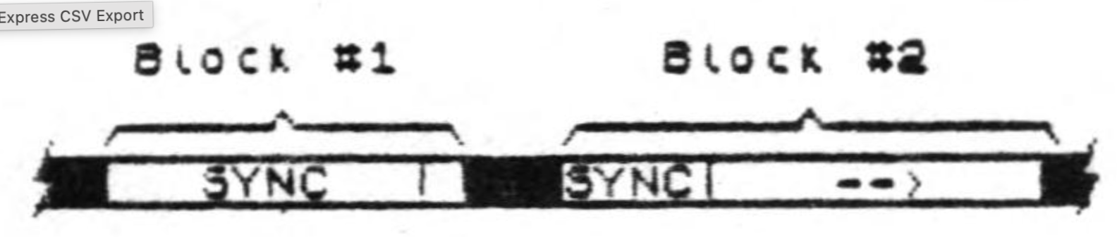 Each block begins with synchronizing cycles. These cycles are used by the 2068 to compensate for variation in tape speed from one recorder to another, or due to other causes.