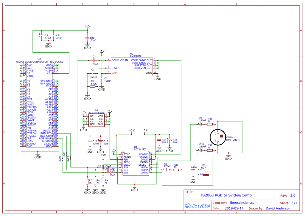 So, I went back to the data sheets for the AD724 RGB to NTSC/PAL Encoder and the LM1881 Video Sync Separator.