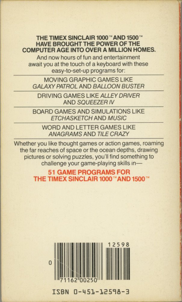 51 games are listed, some very short and simple, other long and complex. Explains how to run the game but not how the program works.