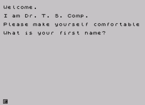 740 PRINT '"Welcome."''"I am Dr. T. S. Comp."''"Please make yourself comfortable"