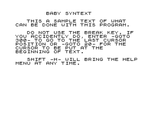 3080 PRINT ,,"IF PROGRAM BREAKS, <GOTO 20> FOR BEGINNING OF TEXT. <GOTO 300> FOR LAST CURSOR POSITION. DO NOT PRESS THE <BREAK> KEY FORSPACE BETWEEN CHARACTERS."