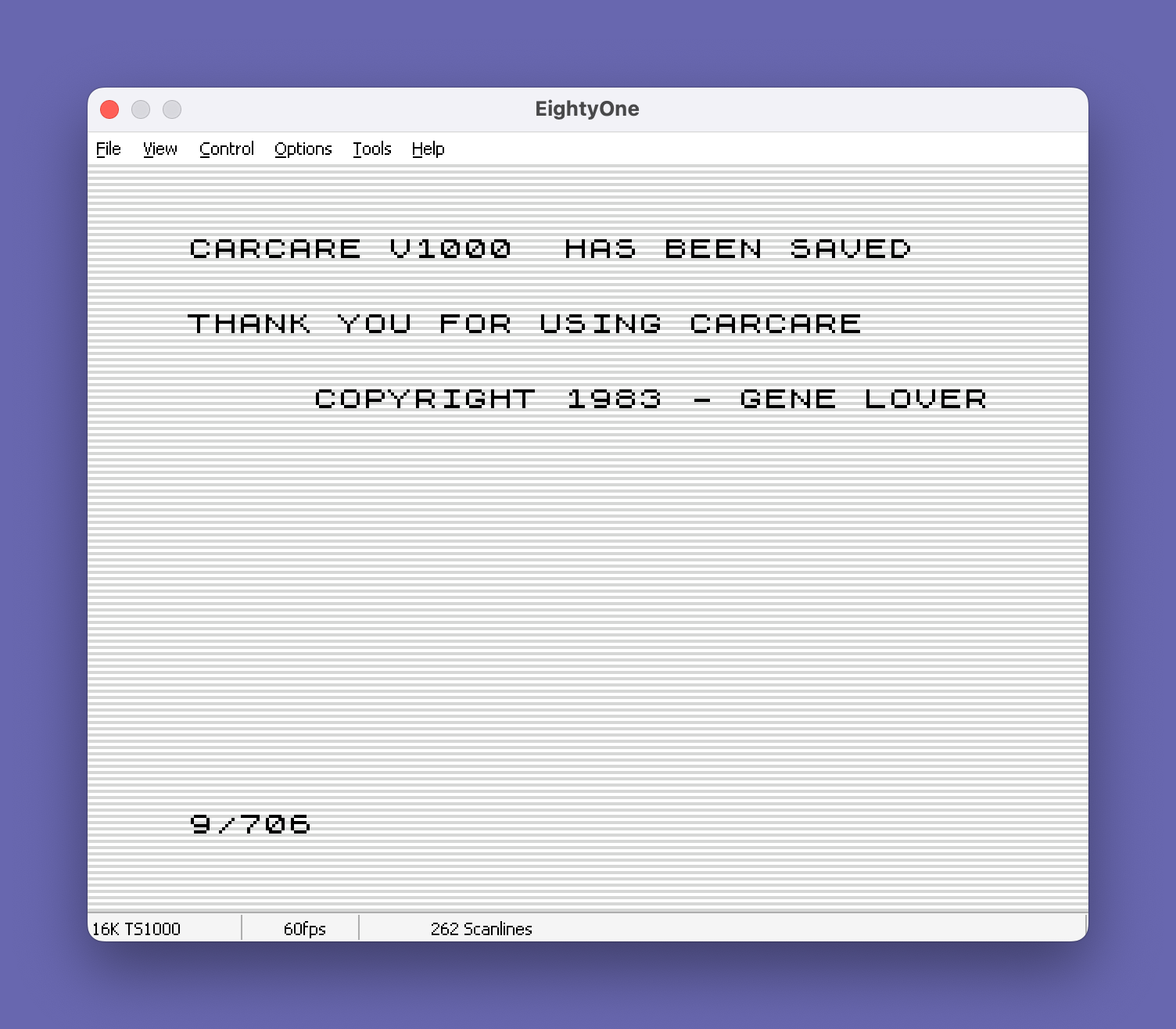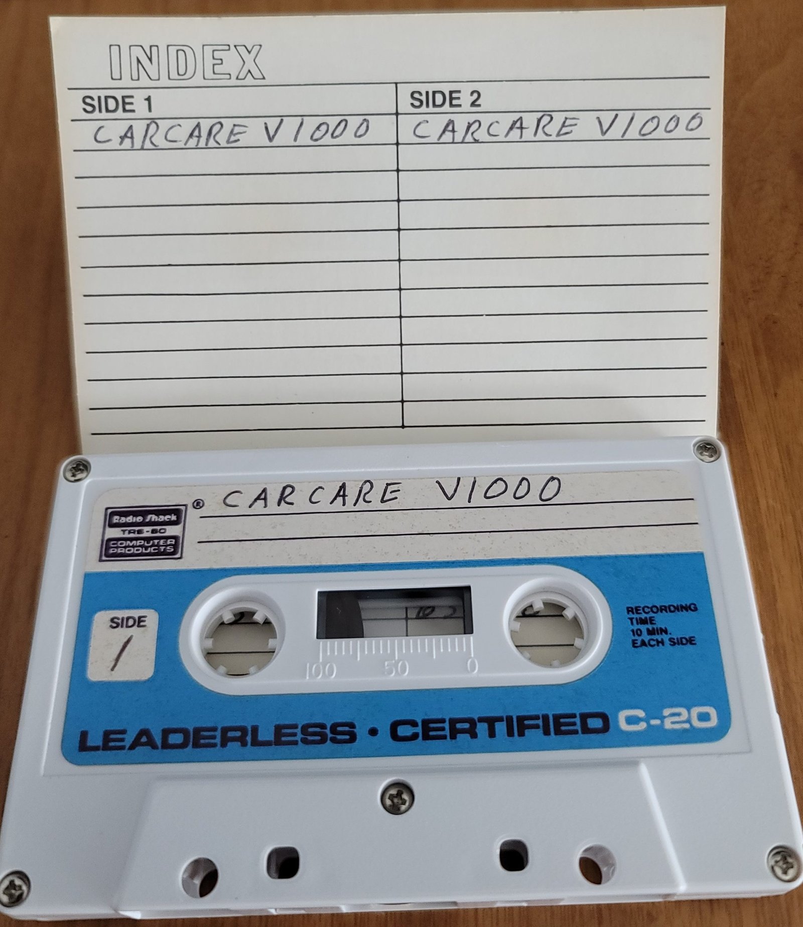 Care Care V1000 Download Developer(s): Gene Lover Date: 1983 Type: Cassette Platform(s): TS 1000 Car maintenance record system. Content Appears On Related Products Related Articles Related Content Image Gallery Source Code Tags Archived Media Downloadable TS 1000 People Gene Lover