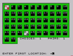 140 LET CH=0: LET PR=0: PRINT AT 16,8;"CHOICES: 0 PAIRS: 0"