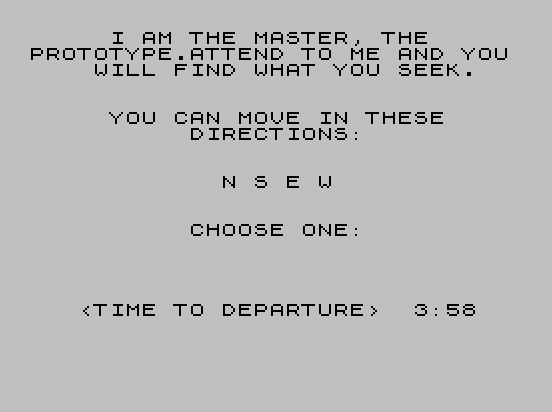 280 PRINT AT 17,4;: LET M$="<TIME TO DEPARTURE> "+STR$ T1+":"+T$: GO SUB 3000: PAUSE 60: GO TO 220