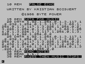 10 REM FALSE ECHO WRITTEN BY KRISTIAN BOISVERT ©1986 BYTE POWER