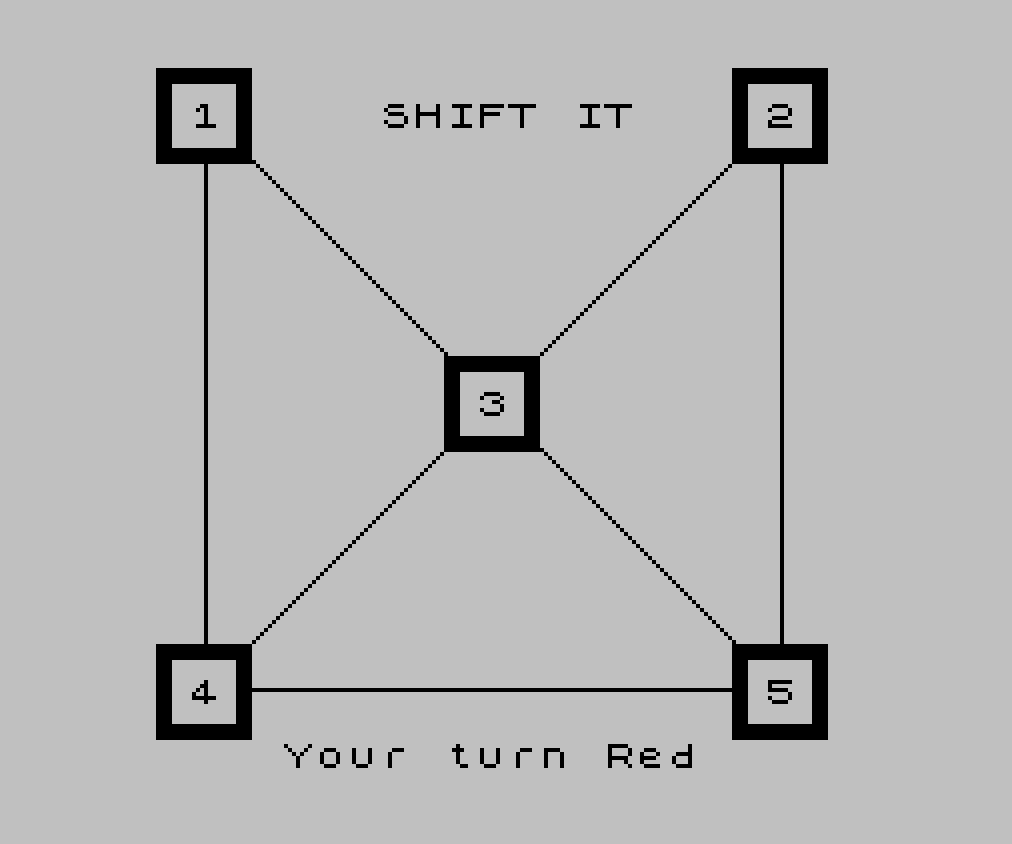 10 CLS : PRINT AT 6,0;" Two players place their 2 chipson the board, then shift them... If they can!"'''" Press the bar": PAUSE 0: CLS