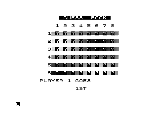 | 1 | Title: “GUESS BACK” (inverse video) |