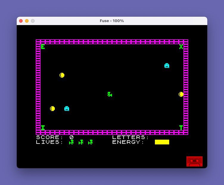 8020 PRINT INK 6;"CORNER OF THE ROOMS TO SPELL THE WORD-EXIT. YOU WILL THEN AUTOMAT-ICALLY BE TRANSPORTED TO THE NEXT LEVEL."