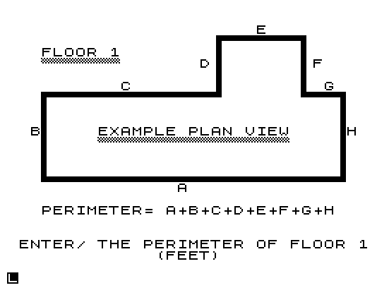 110 PRINT AT 20,0;" ENTER/ THE PERIMETER OF FLOOR ";I