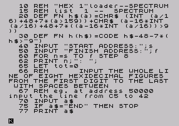 10 REM "HEX 1"loader--SPECTRUM