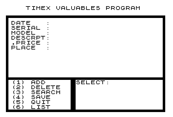 230 LET X$="TIMEX VALUABLES PROGRAM"