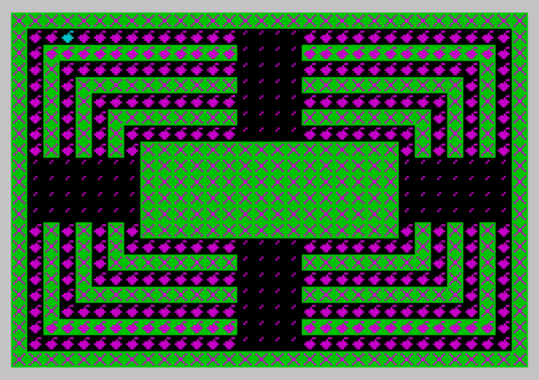- Arena drawing (lines 80–300): The play-field border and interior are printed using a layered approach controlled by flag