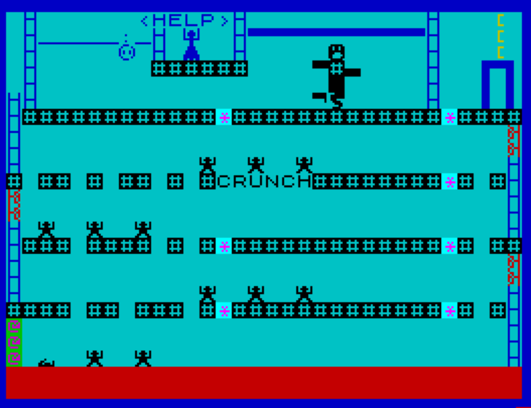 420 PRINT AT M,N; FLASH 1;"\o";AT 10,13;"CRUNCH"