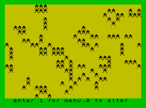 40 PRINT AT 8,3;"THE INITIAL COLONY "'"MAY BE RANDOM OR PROGRAMMED"