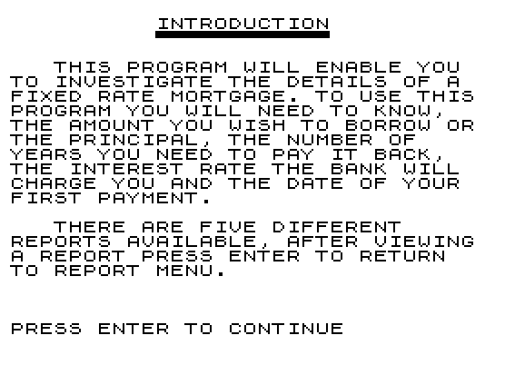 420 PRINT "MORTGAGE DATA FOR ";MN;"/";YR