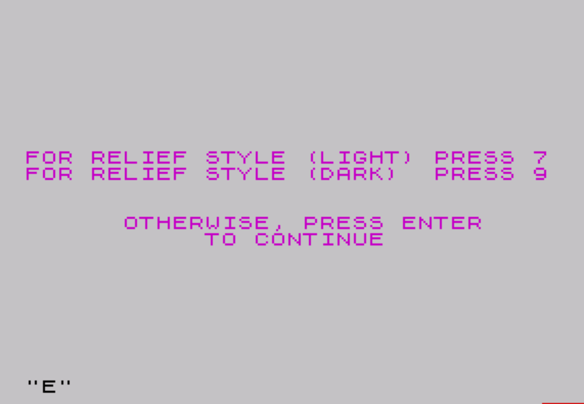 90 PRINT "FOR RELIEF STYLE (DARK) PRESS 9"