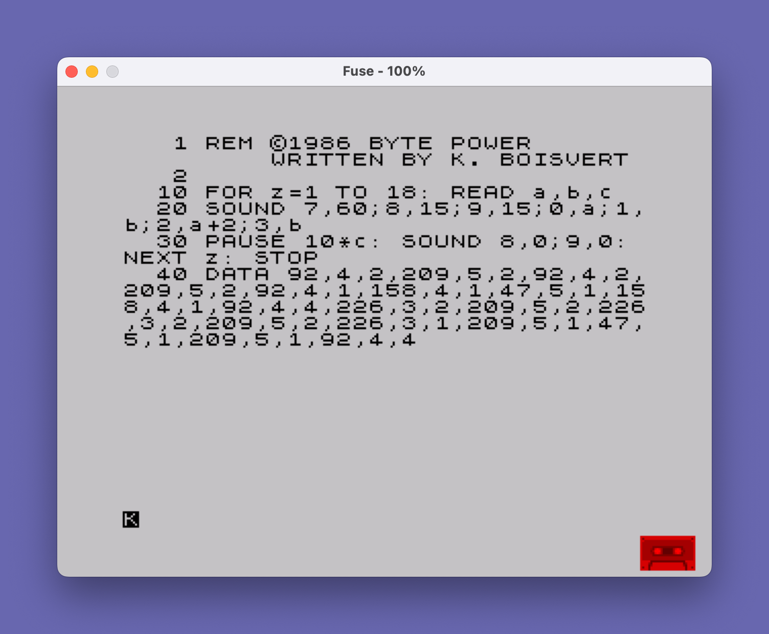 20 SOUND 7,60;8,15;9,15;0,a;1,b;2,a+2;3,b