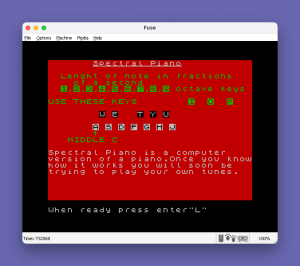 680 PRINT INK 7;AT 14,0;"Spectral Piano is a computer version of a piano.Once you knowhow it works you will soon be trying to play your own tunes."