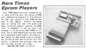 ROM for demonstrators used in stores as selling tools. EPROM contains a BASIC demonstration program that starts on power up. It includes graphics and interactive examples of what the computer could do.