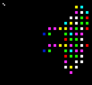220 PRINT AT Y,X; BRIGHT 1; INK INT (RND*6)+2;"\ "
