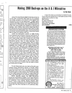 Article explaining a convenient method for making backup copies of Pro/File 2068 data files on the A&J Mikrodrive, describing the file transfer procedure between wafers.